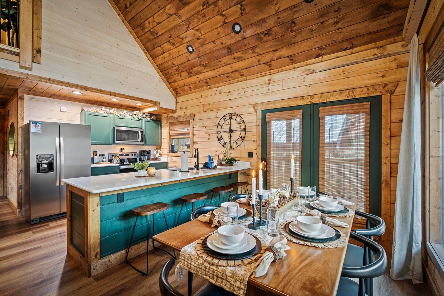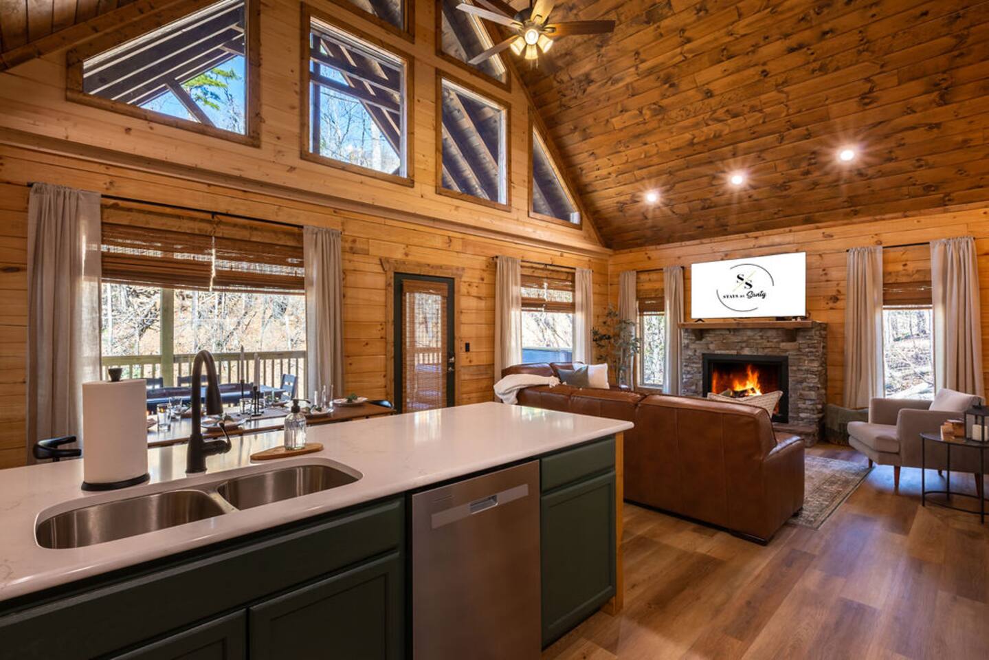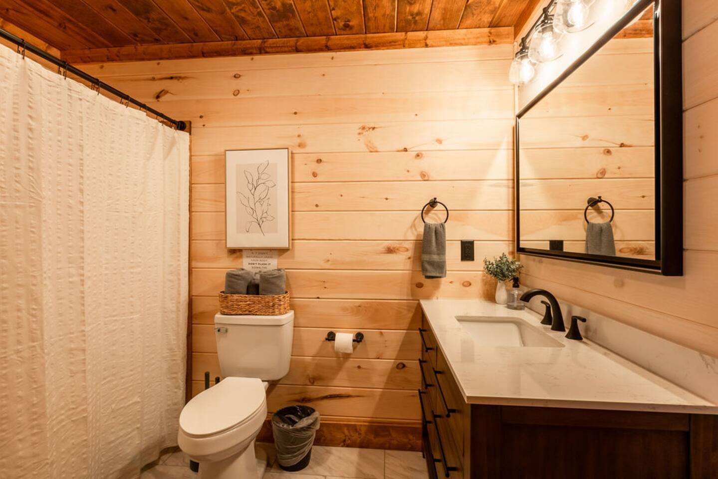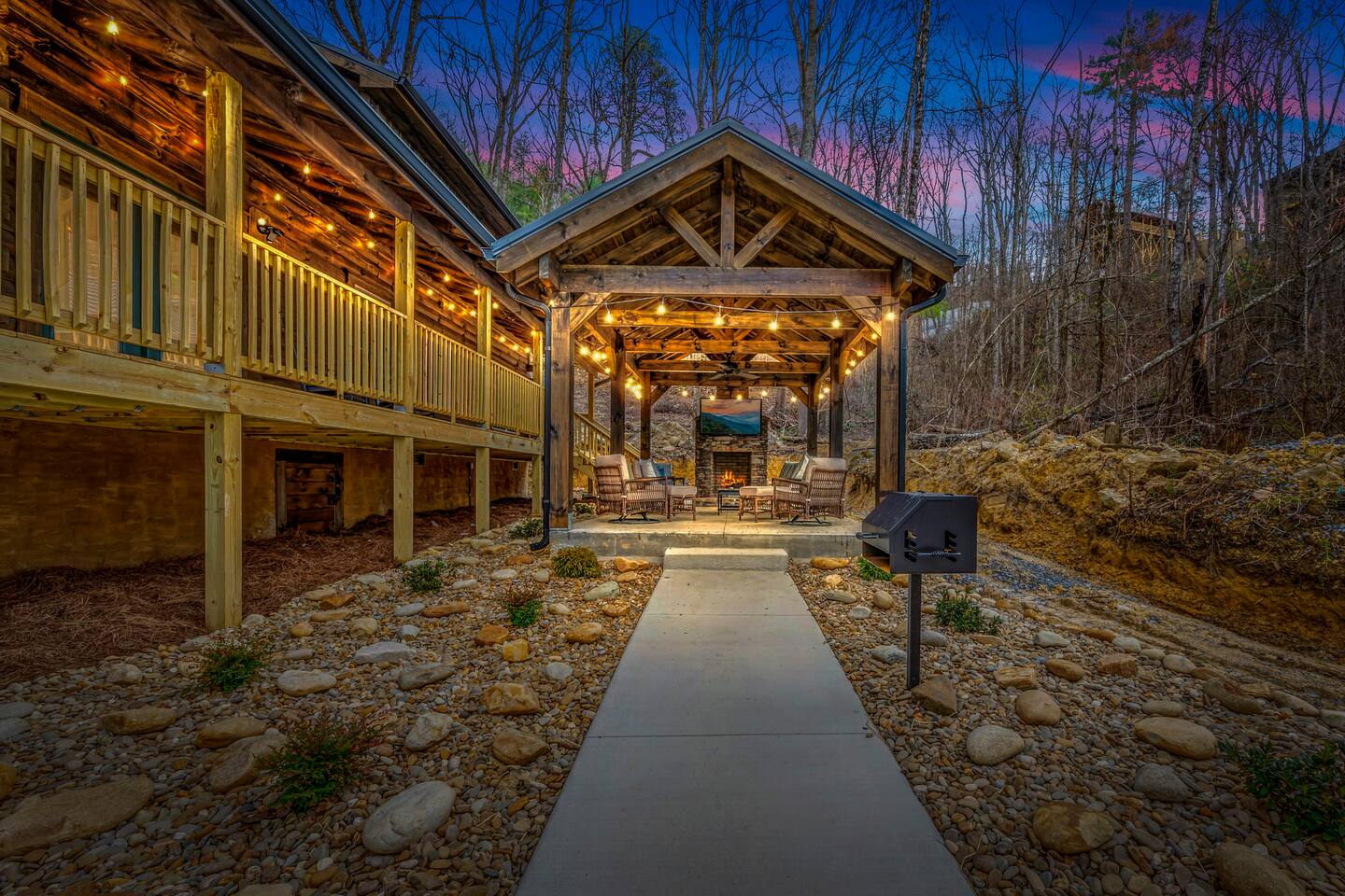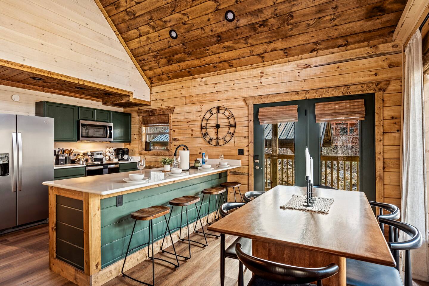 Unwind in our stunning modern and cozy cabin located in the heart of Tennessee's Great Smoky Mountains. There's space for everyone to relax after a long day of adventure either inside or in our outdoor pavilion. ** Main Level ** ★ 2 King BR each with Ensuite Bathroom ★ Roku TV in each Bedroom & Living Room ★ Fully equipped kitchen ★ Keurig & Drip Coffee Maker (BYO K-Cups and/or coffee) ★ Dining area with seating for up to 10 people ★ Living area ★ Washer & Dryer ** Upper level *** ★ 1 BR with King Bed with Full Ensuite Bathroom ★ Loft with Twin over Full Bunk ★ Roku TV in Loft & Bedroom ★ Pool table & Shuffle Board Game ★ Arcade, Wall Connect Four, & Board Games ★ Work space area **Outdoor Area** ★ Hot Tub ★ Pavilion with wood-burning fireplace ★ Roku TV for your enjoyment ★ Park style grill ★ Dining area with string lights & rocking chairs ★ Parking for up to 4 cars Our starter kit provides: ★ Few Laundry Pods and dishwashing pods ★ Cooking Oil Spray ★ Salt & Pepper ★ 1 Kitchen sponge ★ Coffee pods ★ Sugar, sweet & low ★ Coffee creamer ★ Toilet tissue in each bathroom ★ Few trash bags ★ 1 Roll of Paper Towel Please note that by booking the cabin you agree to our house rules and Rental Agreement which will be sent in your booking confirmation email for signature. The booking guest is required to sign the Rental Agreement within 24 hours of booking. We encourage you to message us if you have any questions about this requirement. We know that pets are cherished members of the family. That's why we welcome your furry companions. However, we ask our guest to follow our house rules. Please review them to confirm they align with you. Please be aware that our cabin is in the Great Smoky Mountains, and in spite of regular pest control you may encounter various insects. We request you keep all doors and windows closed to minimize insects inside the cabin. No Smoking Policy: Smoking is strictly prohibited INSIDE the cabin. The cabin is equipped with a smoke monitoring device designed to detect cigarette/vape smoke. Violation of this policy will result in the immediate termination of the booking and a $500 charge for deep clean. Firewood and/or charcoal is Not provided. You may purchase firewood and/or charcoal at Ace Hardware near the cabin or any nearby store. Wi-Fi is available; however, connectivity may be impacted given our mountainous surroundings. We are here to assist you and make your stay a memorable one. Upon booking with us you will receive a digital guidebook with all things to know about the cabin as well as a list of our favorite places to eat and visit.